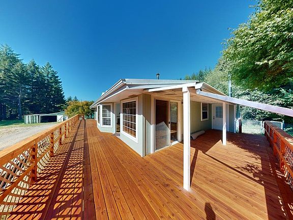 Country Living on the Oregon Coast! Discover the tranquility of country living with this spacious one-level manufactured home in beautiful Brookings, Oregon. This home offers a bright, open floor plan with family rooms and a versatile bonus room that could easily be transformed into a third bedroom, den, or office. Skylights and double-pane windows flood the space with natural light, complementing the home. The kitchen is well-appointed, with a pantry, stainless steel appliances, and solid-surface Corian countertops that provide both style and functionality. Step outside onto the expansive newer wrap-around decking, perfect for enjoying outdoor living and entertaining. This property offers abundant outdoor amenities. It features two large shops, multiple storage sheds, and a garden area, ideal for those with a green thumb. A charming red storage barn has been converted into guest sleeping quarters, adding extra flexibility for visitors. Much of the land is usable and level. Shop number one is 2268 sq ft, and shop number two is 1200 sq ft. Situated on over 5 acres of mostly level land, there’s ample room for farm animals, hobbies, or enjoying wide open spaces. With RV parking available both inside and out, this property is perfect for those with recreational vehicles or trailers. Whether you are looking for a peaceful retreat or a place to spread out and live the country lifestyle, this home has it all! Priced to sell! Ask to see the 3D tour.