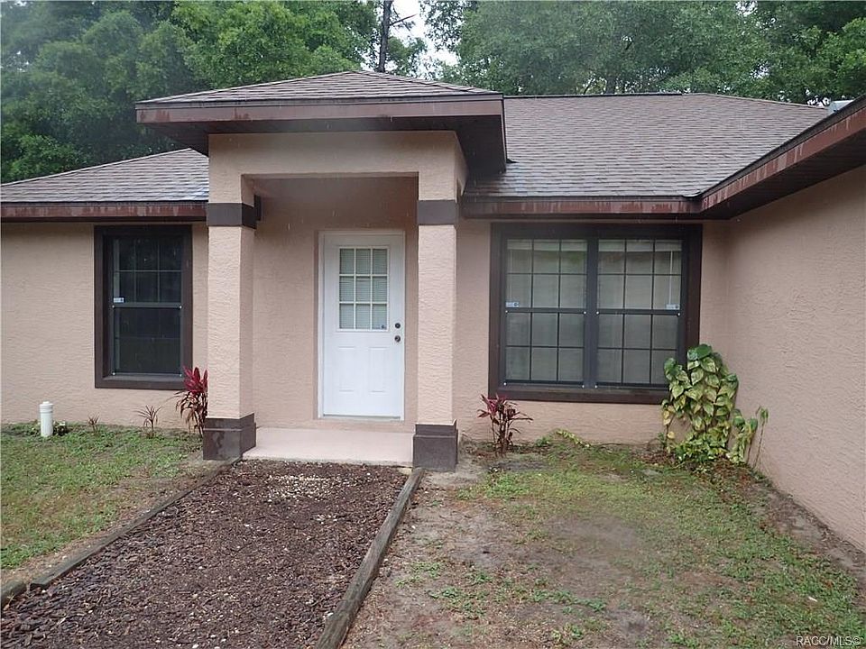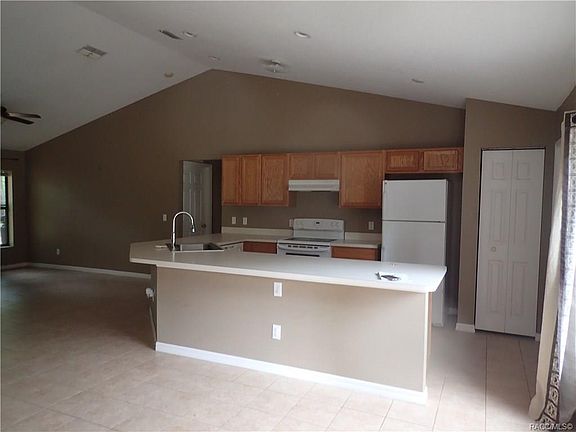 Priced to MOVE! 3 bedroom, 2 bath, 2 car garage with ceramic tile throughout! Open floor plan with kitchen offering breakfast counter, pantry closet, dishwasher and large stainless steel sink. Overlooks living room and dining room. Sliding doors lead to back covered lanai overlooking private wooded views. Split floor plan with master offering private bath with walk in closet and tub/shower combination and linen closet. Guest bath has tub/shower combination and divides guest bedrooms with nice sized closets. Washer and Dryer hookups in garage. Water softener system outside.