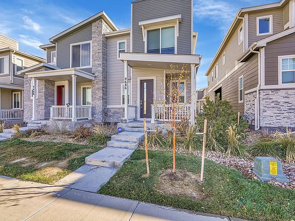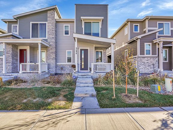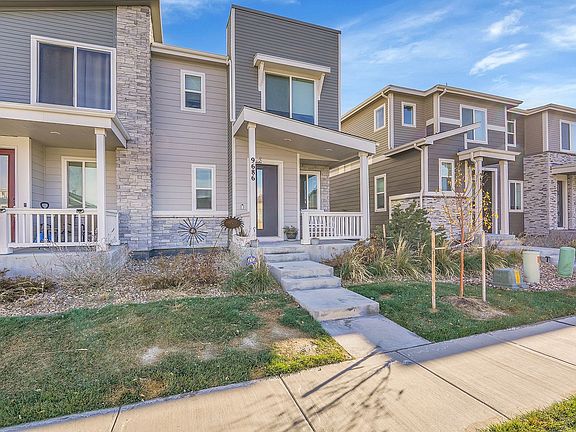 Beautiful 3 bedroom 2 1/2 bath duplex with attached 2 car garage in Commerce City. Enter the home from the front porch with space for outdoor seating. The kitchen is open to the dining and living room. There is also a powder bath on the main level. The 2nd floor has 2 bedrooms and a master suite with a private bath with dual vanities and walk-in closet. The kitchen is equipped with a dishwasher, refrigerator, microwave, gas range, and large kitchen island with room for seating. There is also a private patio off of the living room. Washer and dryer are included, 1 dog ok with $300 refundable pet deposit and $49.50 monthly pet rent. Water, sewer and trash are included in the rent.