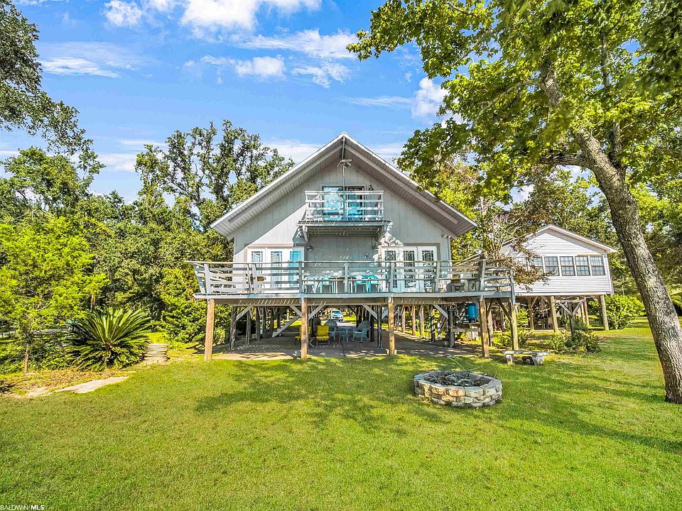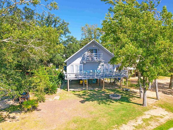 Relaxation and tranquility are sure to find you here. This waterfront cottage is situated on Bon Secour Bay and will allow you to experience breathtaking sunsets and vast direct water views, and also has access to a community boat launch. This property is perfect for a primary residence, second home, or it can even be used as a rental investment that allows short term rentals. As you enter, you immediately feel right at home. There is so much character and charm. Soaring ceilings, beautiful wood beams, stone accents, vinyl flooring, and tons of natural lighting from all the windows. You can take in water views from just about anywhere in the house. Imagine cooking dinner in the kitchen, eating with your family in the dining area, or just sitting on the couch and being able to enjoy direct views of the bay. Downstairs you will find a renovated kitchen equipped with granite countertops, custom tile backsplash, new stove, and a step-up bar for additional seating. There is also a large living room, dining area, 2 bedrooms, and one full bathroom complete with a custom tiled shower. You can step out onto the large deck overlooking the bay and take it all in. This is the perfect spot for your rocking chairs! Upstairs has the potential to be whatever you want it to be. A huge space that could be used as a 3rd bedroom, playroom, office area, and so much more. There is a full bathroom upstairs, as well as a private balcony overlooking the water. Other upgrades include a metal standing seam roof good for 60 plus years with 2x6 roof decking, all plumbing feed lines were replaced with pex pipe, 12 new windows installed in 2020, new french doors to the deck installed in 2019, and a tankless hot water heater installed in 2019.