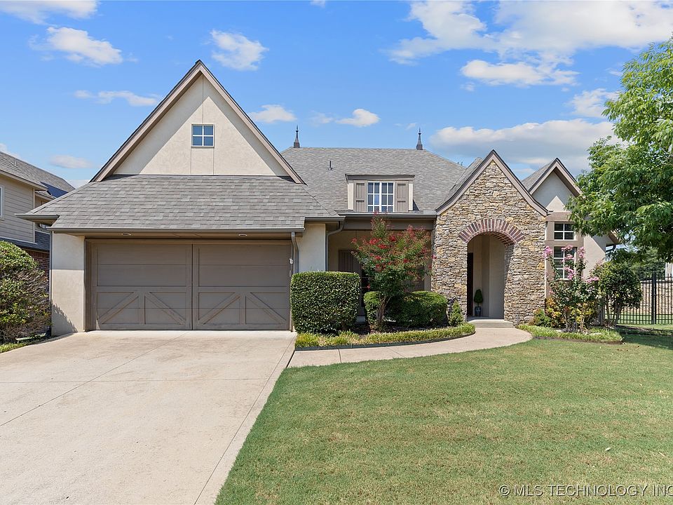 Remarkable home in highly desirable LEGENDS Community in Bixby north elementary school. Spacious Kitchen is chef's dream w/ gas 5 burner range & newer high-end SS appliances. Vaulted ceilings, hardwood & custom interior paint throughout. NEW A/C units! New roof 2021 New hot water heater and new hot tub, Primary bedroom office & Additional bedroom on the first floor. Bonus & 2 bd up. Master bath is a perfect getaway w/ luxury WP tub, walk-in & separate shower. Every bedroom has walk-in closet /pullman bath. House is on corner lot making a spacious backyard w/ rm for pool. 3 car tandem Gar! Community boasts sparkling pool, luxurious clubhouse, and park.