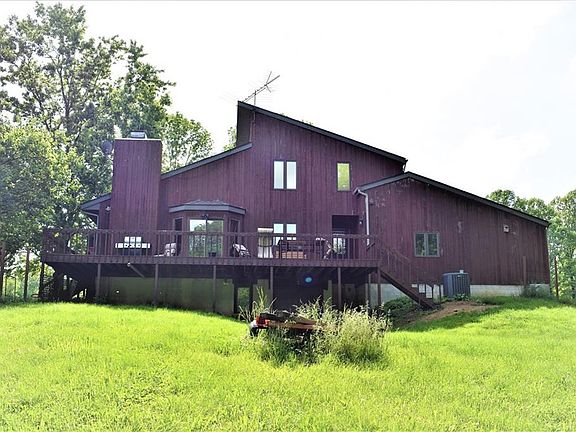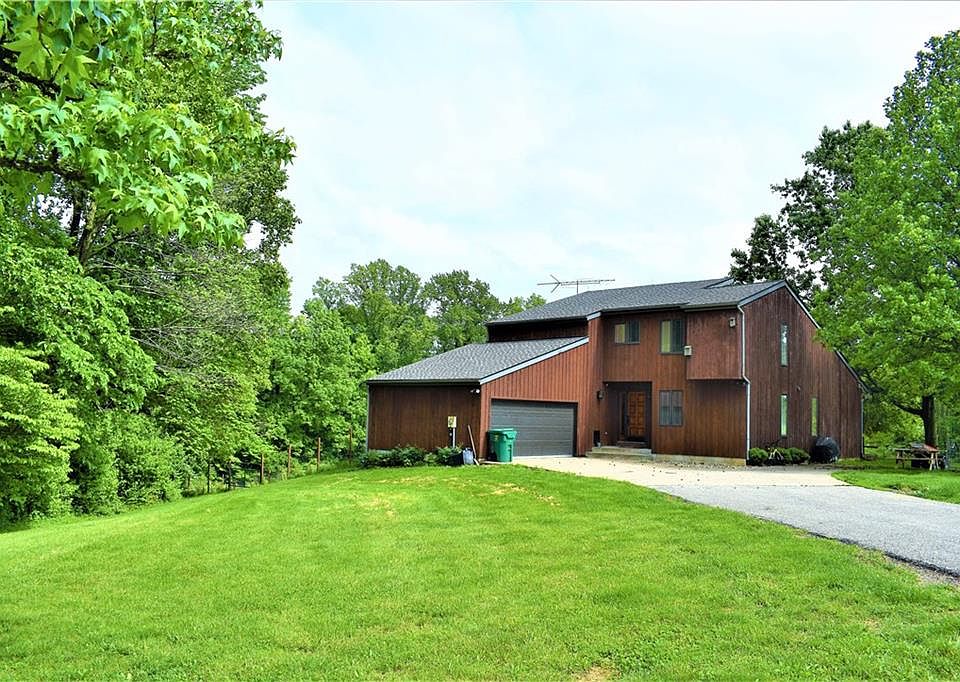 On A Grassy Knoll set back on 15 magnificent acres sits this 4 bedroom, 3.5 bath Contemporary home built for entertaining. Sunken 2-story family room, formal living room w/wood-burning floor to ceiling Limestone fireplace, formal dining w/vaulted knotty pine ceiling, kitchen w/breakfast bar, stainless appliances & breakfast nook, sumptuous master suite w/garden tub, sep shower, his/her closets, vaulted ceiling & attached nursery/exercise room, large bedrooms & partially finished basement w/big 4th BR, rec room & bonus rooms. Gorgeous 4 season rm, multiple decks, fenced area, woods & pasture for enjoying outdoors to the fullest. Open-sided pole barn w/attached lean-to perfect for hobbies or animals. Brand new roof. Home warranty attached.