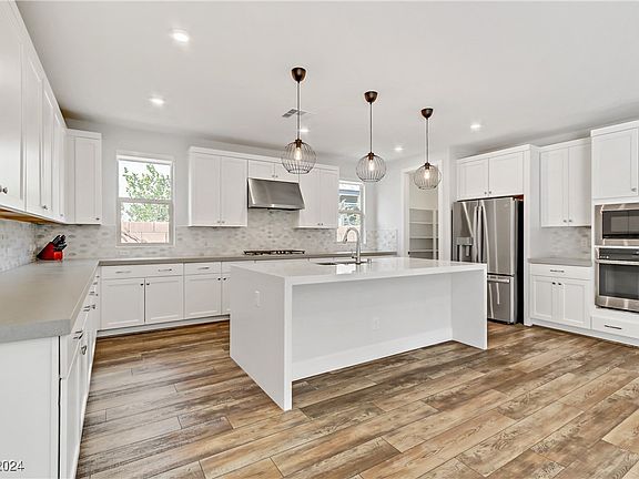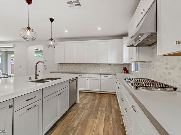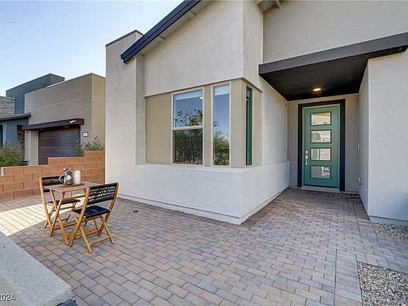 Nestled in the exclusive gated community of Terra Luna in Summerlin South, this meticulously designed single-story home offers 2,076 sq ft of luxurious living space. Featuring an open-concept floor plan, 3 spacious bedrooms, 2.5 pristine bathrooms and elevated finishes throughout. A charming front courtyard w/dual entry gates provides a grand welcome and a private pathway to the rear yard. The gourmet kitchen is equipped w/stainless steel appliances, an oversized island w/waterfall edges and two-tone quartz countertops. The sleek luxury vinyl plank flooring throughout is perfect for both entertaining and everyday living. Step outside through the 8' stackable slider to a fully landscaped backyard w/maturing horticulture, low-maintenance artificial grass and elegant paver stones. Take in the serene sunsets & mountain backdrop, while relaxing under the covered loggia. Just minutes from Bishop Gorman, The Durango and UnCommons, this home combines location and convenience w/modern elegance