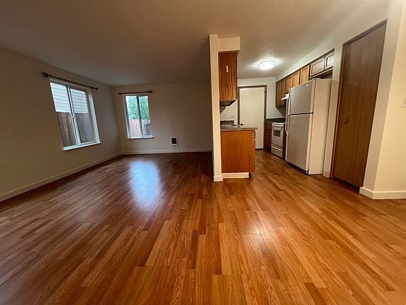 Freshly painted, washer and dryer hookups, back yard, driveway parking, 1 car garage, electric wall heaters. Tenant is responsible for all utilities and maintaining the yard. First months rent + security deposit due at the time of signing the lease. No smoking allowed.