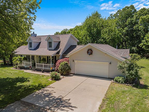 Motivated Sellers!!! Cape Cod style home with upgraded stainless kitchen appliances, new roof, well pump, newer HVAC, and hot water heater. Each bedroom has its own walk in closet. The home also has the Ring system with cameras in the front and back, for extra security. The house sits in a rural setting surrounded by lush landscaping, wildlife, flowering trees, and a variety of berries and mushrooms. The property has easy access to interstate 72 with the peace and quiet of a country setting.