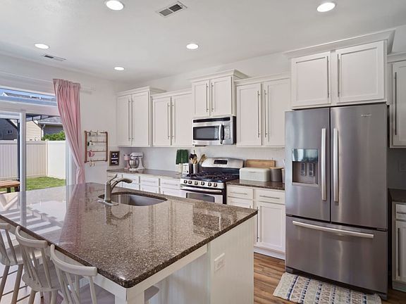Office on the main floor that can be used as a 4th bedroom with a full bath. Large great room/dining/kitchen. Large island with upgraded cabinets, appliances and spacious pantry. The master suite is upstairs with two sinks in the bathroom, separate tub/shower. Two other bedrooms upstairs with a full bathroom. Laundry room has open shelving for storage. The bonus room over the two car garage is open now, but is plumbed to potentially add a bathroom and 1-2 more bedrooms.