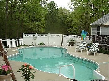 This lovely rancher is conveniently located in Genito West and is surrounded by over three private acres. The home has easy maintenance vinyl siding and vinyl tilt windows, vaulted ceilings, skylights, and wood floors. The kitchen has Corian/solid-surface counters, island with grill, & sunny dining area. The formal dining room has columns and is open to the vaulted great room with beautiful stone fireplace. The private master suite has wood floors, luxurious master bath & large walk-in closet. There are two additional bedrooms and hall full bath. The front porch overlooks the landscaped grounds and the rear deck overlooks the heated in-ground pool & spa. There is an oversized attached two-car garage and a spacious detached shed with electricity. Don't miss this special home offering privacy & the conveniences of one-level living.
