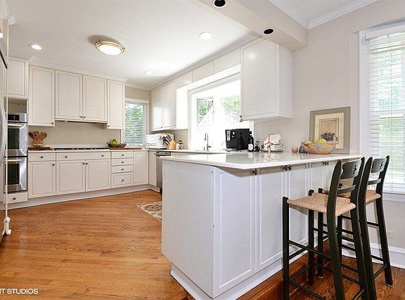 Big, beautifully updated 5 BR Colonial set back on nearly a half-acre in desirable East Highland Park is decorated and move in ready. The super-sized kitchen, family room, living room, playroom / library and dining room - create a spacious, open plan floor for relaxing and entertaining. Main floor features include stainless appliances, exposed brick, a double sided fireplace, custom mill work, mud room with beverage fridge and warming oven and an expansive deck and patio. A 2nd floor den leads to a large master suite with his & HER walk in closets, master bath and a beautiful 2nd story deck. Hardwood floors new LED lighting & windows contribute to the bright open feeling in this home. Easy access with a big circular drive and permit ready plans for a 2.5 car garage. Close to lake: walk to town, trains, schools, parks, and Ravinia. Owner is a licensed real estate agent.