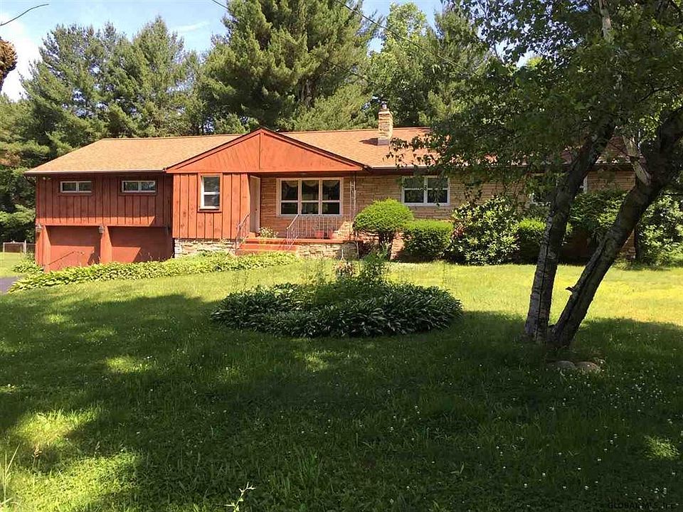 A spacious ranch home with marble and stone front located on 3/4 acre lot set back from the road. Open space with kitchen, dining & living area w/gorgeous marble fireplace. Great for entertaining. 4 Bedrooms with hardwood floors & 2 full baths. Wall to wall carpeting. Spacious family room on 2nd level w/office or added bedroom. Large 2 car garage. Large lot with back yard deck. full basement for storage with large cedar closet. Niskayuna school district. Priced to sell.