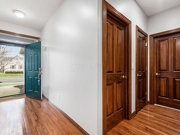 Beautiful ranch single family attached patio home in Linworth Village. Sought after community in NW Columbus close to everything w/association doing all yard work! Quality features include natural stained woodwork, 6 panel doors, 9'ceilings, Hdwd floors in kitchen, eating area, hallways and Den. Kitchen w/white cabinets, glass doors, Corian counters, raised eating bar, pantry, Stainless Steel Appl, Sunny front Dinette. Formal Dining area opens to Great Rm w/ gas FPLC & Den w/windows along back & side! Owner's suite w/huge walk-in closet w/shelving; long bath w/high double vanity & new fixtures. Finished LL Family Rm, 3rd bdrm & 3rd full bath. HUGE storage room w/wall of Blt-in shelving. New paint 2023, New Roof 2022, Furnace, A/C & water heater 2015. Entertain on the large deck in back