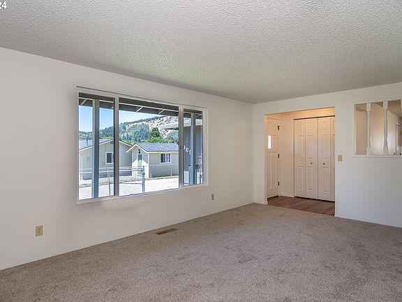 Come see this beautifully updated 3-bed, 2-bath home nestled in the charming town of Myrtle Creek, Oregon! Enjoy the spacious living room featuring a large picture window framing beautiful mountain views and sunsets, and a cozy brick fireplace for warmth during cooler seasons. You will like the light and brightness of the kitchen and enormous dining room with a bar counter perfect for enjoying dinners and family gatherings. Spacious master bedroom features a walk-in closet. Home recently renovated with, new kitchen sink, fresh interior and exterior paint, and new flooring throughout. The meticulously organized 2-car garage includes a convenient shop area, numerous shelves, and cabinets for all your storage needs. Outside, the large, easy-maintenance backyard offers privacy and ample space for gardening, play, or simply relaxing in the sun while enjoying the serene mountain surroundings. This home is completely hugged by a fence, keeping your family and pets safe and sound. The secluded front yard is generously sized shielded from the street by a beautiful tall green wall. Private driveway large enough for parking RVs, cars, or boats. Home located in desirable neighborhood, just a few blocks from golf course. This property offers everything you need for peaceful, private living, combined with the convenience of town amenities. Don't miss out on this perfect blend of comfort and tranquility!
