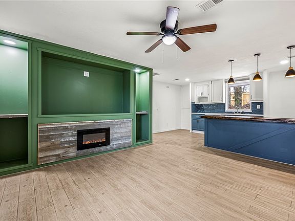 Nestled on 1.20 acres of wooded, secluded land with breathtaking views, this beautifully updated home offers a perfect blend of modern style and charm. The stunning kitchen boasts two-tone cabinets, wood and quartz countertops, an electric cooktop, stylish lighting, a gorgeous backsplash, and ample pantry storage. An open floor plan showcases a striking focal wall in the living room with built-in storage, wood-look tile flooring throughout, and an electric fireplace. The primary suite features a spa-like bathroom with a walk-in tile shower and elegant vanity, while two secondary bedrooms and an office provide plenty of space. Fully remodeled second bathroom. Fenced-in area for pets complete this incredible property! Freshly paved driveway to make accessibility easier.