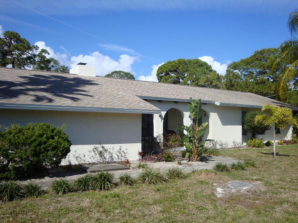 HIGHEST & BEST BY 7PM March 2nd. .PRICED TO SELL! Here is your big blank slate! Extra roomy 4 bedroom home with wood-burning fireplace, TWO 2-car garages. Attached garage is almost 700 sq ft. Detached garage is almost 500 sq ft and would make a great work shop or pool cabana or IN-LAW SUITE. New roof in 2005 and new AC within 1 year. Located on an almost half acre corner lot just minutes from Merritt Island's shopping, churches and schools. Plenty of room for a pool. The possibilities are endless here! Great bones, just needs some updating.