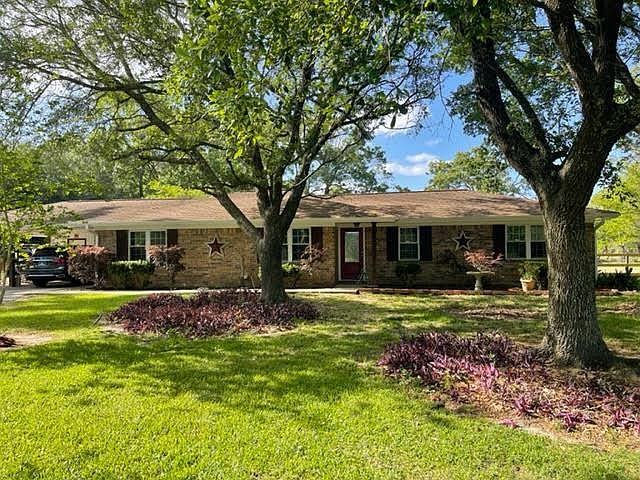 Have you dreamed of country living? Well here it is, at its best! Gorgeous oak trees adorn the front yard and crepe myrtles take the spotlight in the back. This home sits on 5 acres with a stocked pond. Home has 3 bedrooms, 2 baths with a living room and a den. The den has a great stone wood burning fireplace. The kitchen boasts of beautiful custom cabinets and granite countertops. The entire home has faux wood tile floors. Every window has custom wood blinds. Beautiful crown molding and trimmed windows throughout. The covered back porch is oversized and looks out to the pond. You will enjoy many relaxing evenings there! The attached carport comes complete with a storage room with a roll up garage door for easy access for your tractor and equipment. There is also a barn and chicken coup. Home has never flooded. Call your favorite Realtor to view today. This one will not last long.