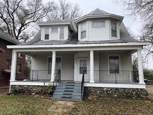 Spacious 4 bedroom historic home within walking distance to Millikin University. Updates include roof, front porch, new vinyl flooring in kitchen, updated bathrooms and aluminum siding. Beautiful fireplace in foyer gives an impressive entrance into the home. Hardwood floors throughout. Main level has living room, large kitchen and dining area, as well as a bonus enclosed sunroom above the garage and a half bath. Second floor has 4 bedrooms, one of them with a fireplace. Attic has potential to be finished for additional living space as well. Basement has laundry room, additional half bath and access to garage. Corner lot allows for extra yard space and includes a play house with fireplace that is modeled after the house.