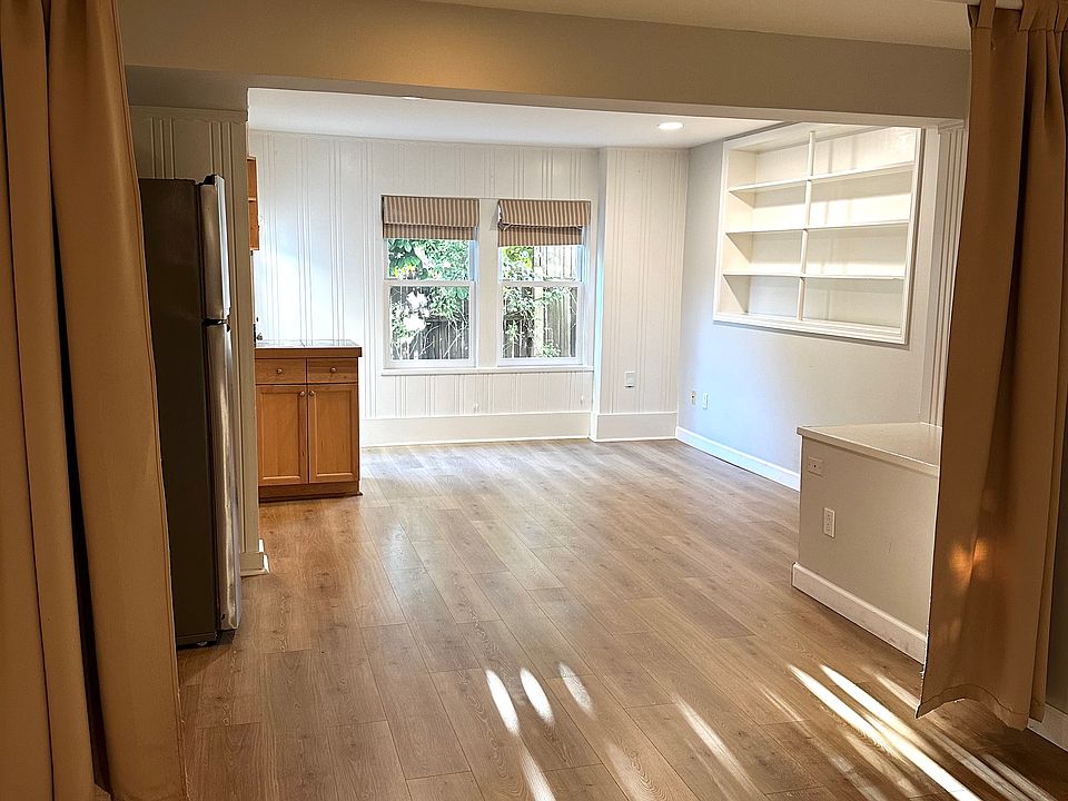Cute garden level studio apartment for rent with great natural light, walk in closet and tons of storage. UTILITIES INCLUDED. Street parking is ample and free. Laundry is shared with the single family home above the unit. Pets are welcome upon approval. This apartment features luxury plank vinyl floors and charming built in bookshelves. It is located on a quiet residential street. The entrance is set back from the street and behind a gate. Walk to shops on Grand Ave and Lakeshore and visit the Lakeshore Farmer's Market on Sunday. This unit is also a short walk from Piedmont Park and off leash dog area.