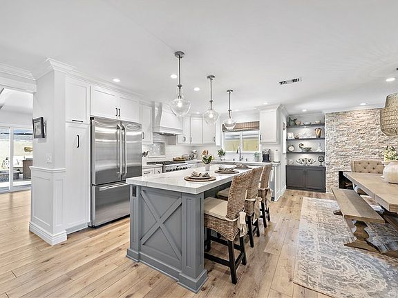 This stunning single story home features luxury finishes and custom upgrades throughout. The configuration of this floor plan truly maximizes the space to offer large rooms and a perfect flow throughout the home, from the kitchen / dining area to the three bedrooms and master bedroom, with an ensuite bath. Outdoor entertainment is one of the greatest highlights of this property, with the salt water pool and spa, as well as a built-in Island, Grand Turbo BBQ, outdoor refrigerator and surround sound speakers. Other highlights consist of central AC with a touch screen panel, Ring camera, ADT alarm system and USB plugs in every room, including the kitchen island. Storage is plentiful with this two car garage, featuring storage cabinets, rafters and designated space / hookups for laundry units. This location is ideal for families looking to be close to schools, walking distance to parks and a short drive from shopping centers. From functionality too beautiful aesthetic, this incredible home is truly one of a kind.