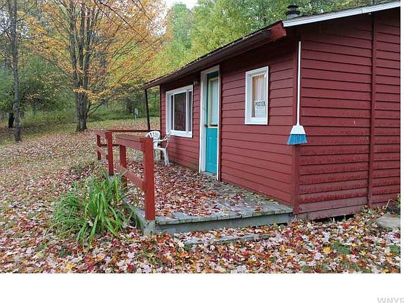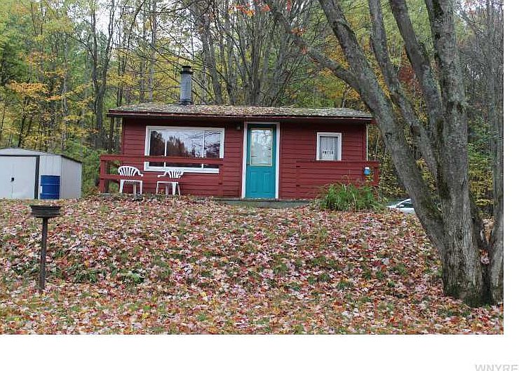 Super little red cabin in the woods! Just off the beaten bath, nice weekend getaway. Watch the seasons unfold from your little open porch overlooking 1/2 acre stocked pond. Fully furnished includes stove, refrigerator, washer and dryer. Wood stove for those cool nites. Also has electric heat. Nicely equipped updated kitchenette. Two storage sheds. Paddle boat in shed can stay. Lawn mower does not stay. Septic system installed 2005. You will like it here!