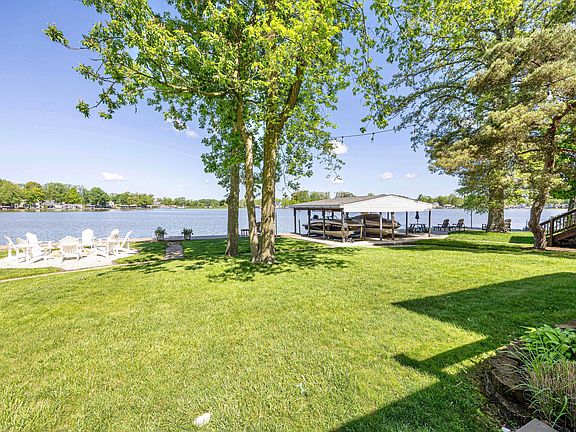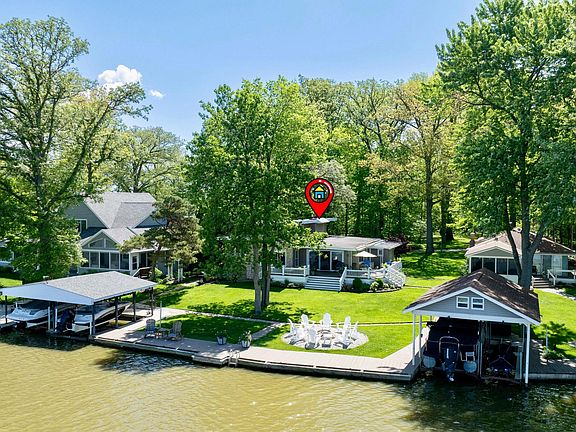*SHOWINGS BEGIN ON 5/22/24* Welcome home to this stunning 3 bed/2.5 bath waterfront property on Indian Lake! The exterior features 75' of shoreline with open water & sunset views; spacious yard; fire ring; covered dock with one slip & electric lift; new concrete; & covered patio. Inside you'll find many updates including a modern kitchen with Corian counters, custom cabinetry, & SS appliances. The spacious living room features a gas fireplace & a sliding door that leads to the covered deck. Upstairs you'll find the owner's suite with a 1/2 bath & large windows looking out to the open water. House interior & exterior walls were constructed with cinder block, ensuring structural longevity. The partial unfinished basement has a washer, dryer, and a lakeside door for convenient storage space!