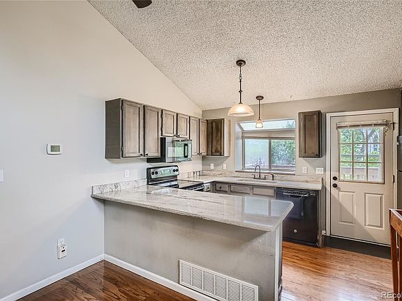 Don’t miss this very unique townhome in the coveted Dakota Station; one of the few units with an actual WALKOUT BASEMENT! This 4 bedroom/2 full bath sits at the end of the building nestled by trees and backing to a huge open space. You can enjoy this open space while enjoying the back deck or from looking out the kitchen OR bedroom windows! There is ALSO a fenced in yard below the deck for your furry friends, to grow a garden or just relaxing in the shade. Inside on the main level is a large living room with beautiful flooring, 2 bedrooms, a wood burning fireplace for snowy days, an updated kitchen and bath with granite counters, plus vaulted ceilings! Then go downstairs to your fully finished walkout basement with a large family/game room, two bedrooms, and another full bath! With large closets, and a storage space under the stairs, there is plenty of room for storage. Make sure to schedule a showing now, because this home will go quick! Open House Saturday from 11:00 - 2:00