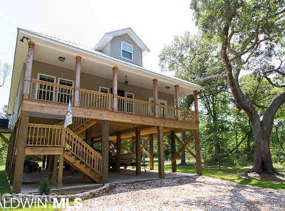 Nicely finished home built in 2012, in almost new condition! This house has a nice large front porch w/ great views of the bay. Nice, Master BR has french doors opening to the front porch to enjoy the views. Nice large kitchen w/ plenty of beautiful custom cabinets & custom tile backsplash. House has a screened back porch that makes for great extra outdoor living space. From the porch, you walk out on a nice large deck to enjoy the sun and to entertain friends. The house also boasts a nice bonus Room upstairs is perfect for either a 4th BR or Office! Also, house has the larger trim package & 9 foot ceilings for the extra value. Underneath the house is all concrete for great parking & sitting areas. Included w/ this house are 2 bay front common areas for you to enjoy. One is 300 feet from house, the other is 600 feet.This home is built to Baldwin County IRC 2012 building code and is built to Fortified Gold Standards with Impact Resistance Doors & Windows. This decreases the insurance.