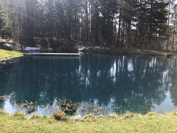 18 acres with a nice seasonal cabin which has a spacious enclosed front porch overlooking a spring-fed pond that is full of fish. The cabin is an open concept and most of the furniture conveys with the sale. Includes a wood stove, a fuel oil furnace, and a full bath. There is a large yard with a storage shed which has electric. The woods are a mixture of pine and hardwoods, and there is a small meadow area for food plots. Lots of wildlife sign throughout the property. ATV and hiking trails established throughout. The lawnmower and row boat also convey with the sale. Borders Kenny Swamp State Land which has over 2,000 acres of great hunting, fishing, kayaking and canoeing.