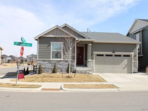 Great New Price! Do Not Miss this Opportunity! Excellent Value, Contract Dropped because of Buyer's Financing, Motivated Sellers, Beautiful Ranch Style Home on a great corner lot in a popular neighborhood. Quick Possession. Open concept floorplan creates a clear, smooth flow, One level Living, great Starter or Downsizer home, Perfect for Entertaining. Plenty of windows and natural light, Stacked Stone accent wall, Recessed Lighting, Outstanding Kitchen design that doesn’t separate the Cook from friends and family. There is an Center Prep Island with a deep sink and seating area, Quartz counter tops & stacked stone accents, Stainless Steel Refrigerator, Stove / Range and Stainless-Steel Dishwasher are included. There's Plenty of Cabinet space and Beautiful Flooring throughout this home. The Kitchen is open to the Living and Dining area. 3 full bedrooms + Bonus room that could be used as a 4th non-conforming bedroom or office/gym etc. The main level Primary Bedroom Suite features a large closet. Primary Bathroom with a large walk-in shower, and dual sinks. Organized Laundry area, Clothes Washer & Dryer are included, This "Energy Wise" home saves on heating costs, features a 96% efficiency Furnaces and Central Air Conditioning. R-21 Insulated Walls and R-49 Ceiling Insulation. Radon Mitigation system. The fenced rear yard has maintenance-free artificial turf, so you can spend more time enjoying the space rather than maintaining it! Playground equipment is included, Home backs to walking path, near Sundial Park, short distance to Southlawn Park & Pool. Great established Neighborhood. Proximity to Bison Ridge Recreation Center and Buffalo Run Golf Course, Restaurants, Shopping and Entertainment. Easy Commute to DIA, Denver and Boulder. Why wait for a Builder? We are ready to go. Call Today!