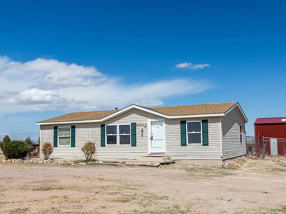 Charming Ranch style home located in Midway This home is located between Pueblo and Colorado springs making it an easy commute between both cities You have a large 5 acre parcel of land which is zoned for horses Fully fenced in yard with 2 huge garages enough for multiple cars and a RV if you wish As you walk in this home you are greeted with the living room and Eat in Kitchen with vaulted ceilings The Kitchen has a counter bar between the Kitchen and Living room You have 3 bedrooms The Master bedrooms adjoins to a 3/4 bath There is an additional full bath in the main hallway