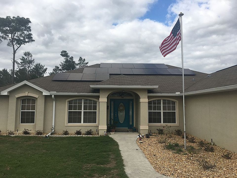 This lovely 3/2 home in Kingsland Estate on .53 acres with inground pool. The high ceilings and large living space is accompanied by a beautiful in ground pool with screened in cover with view of fruit trees in backyard. Large master bed and bath. The layout has no wasted space. The middle school is .5 mile from this house so your children can walk to school. The large lot gives you plenty of room to play in the front or backyard with a nice storage shed for your lawn supplies. New Solar Energy system and Solar Hot water heater and tank installed FEB, 2018 by All American Solar LLC. Green home produces all the energy you need and saves tons of money on hot water.