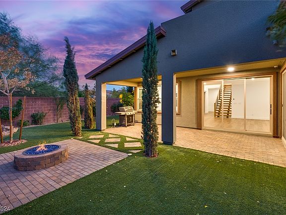 Welcome to this stunning 2,983 sq ft home sits on a spacious corner lot, designed for elegance and functionality. Enjoy seamless indoor-outdoor flow, with an expansive outdoor lounge perfect for entertaining. Inside, the chef’s kitchen features upgraded appliances, sleek countertops, and ample cabinetry.. An open layout leads from the great room to the beautifully landscaped backyard. This home includes a downstairs bedroom with an ensuite, a den overlooking the serene backyard, and an upstairs loft, providing versatile living spaces. The spa-inspired master suite boasts a custom-built closet, while secondary bedrooms offer comfort and privacy. High-end finishes include a floating staircase and upgraded en suites. The garage has built-in shelving, a water filtration system, and a water softener. Step outside to your oasis with 19 fruit trees, a tranquil water feature, and a cozy fire pit. Located in The Cliffs, you're mins from Summerlin's premier dining and shopping.