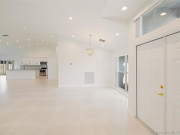 Incredible opportunity to own a 3/2.5 home that was expanded to 2,599 sqft under air & completely remodeled w/ highend finishes. Once you enter the double doors your greeted by the vaulted ceilings & huge open concept floor plan, everything inside & out is brand new. Large modern square tile floors line the living areas, LED recessed lights throughout. The open white kitchen has a large island w/ gorgeous granite countertops & marble backsplash overlooking your main living area! Brand new stainless steel appliances, A/C, WH and huge interior laundry room w/ new washer & dryer. BRAND NEW ROOF, Impact glass & impact french doors throughout. On Cul-de-sac. All work done w/permits. This desired community of Boca Bay is within walking distance to shops, restaurants & more! Video tour available