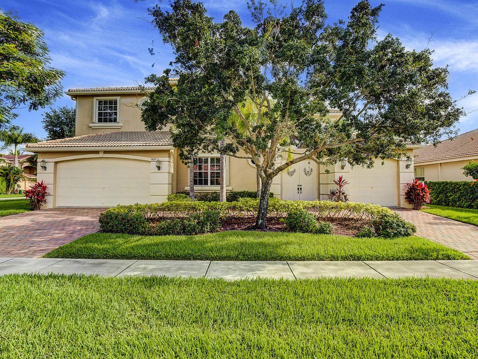 Beautiful ''Maggiore'’ courtyard model home sits on a premium lakefront corner lot in the gate-manned community of Isola Bella Estates. The spacious floor plan offers 5 bedrooms, 4.5 baths, a 3-car garage with over 4,000 square feet of living space. The first floor features formal living and dining rooms, a separate family room, gourmet kitchen w/ granite countertops and center island, laundry room and an en-suite bedroom perfect for guests! Upstairs you will find four additional bedrooms plus a large loft area. Two of the bedrooms share a Jack-and-Jill bath. The Master Suite’s double door entry leads to a spacious room with sitting area, high trey ceilings, dual walk-in closets, and French doors leading to an expansive balcony. The Master bathroom has a dual sink vanity, Roman tub, makeup area, water closet w/ bidet, and a walk-through shower. The home is protected with accordion hurricane shutters throughout. There is plenty of room for a pool in the private courtyard area, or just enjoy the fountain and serene lake views. Isola Bella Estates is a beautiful community 24-hour security, and resort-style amenities including two lighted tennis courts, two basketball courts, two pools, playground, billiards room, and a state-of-the-art fitness center.