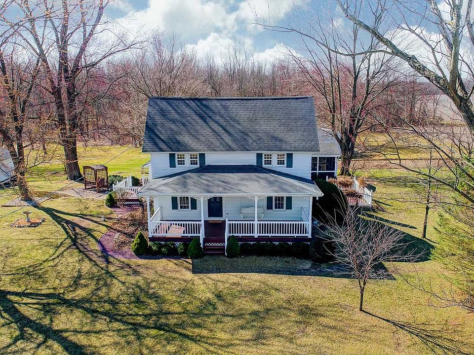 Stroll up the winding path to your very own piece of heaven! This 3 bedroom 2 bath house with over 2,600 square feet, is situated on 8.24 acres of rolling landscape and woods. Pamper yourself in a dream kitchen with an elaborate amount of custom-made golden oak cabinetry loaded with special features including: a pullout table, breakfast bar, and Lazy Susans in every corner. Entertain in the multiple open-concept living areas glowing with original hard-wood flooring. Cozy up by the wood stove in the family room. Open the custom Levolor blinds and shades for a gorgeous view of century old trees. From the spacious screened in porch, watch birds attracted by the nearby sanctuary along with lots of other wildlife including squirrels, turkeys and deer. Grill on the patio, canoe down the bordering creek, gather fruit from trees and berry bushes, and hunt in your very own woods. Current owners made many updates including: new central air and Mitsubishi units; low-maintenance vinyl railing on all porches and decks; new furnace; new 300 foot deep, 5 inch well with excellent water pressure and exceptionally good taste; new insulation; new Kinetico water softener, top-of-the-line R.O. drinking water filter; and whole house air filtration system. This home has a history of being loved!