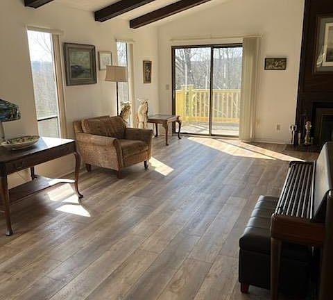 Welcome to hard to find, 3 bedroom, 2.5 bathroom home in Indian Hill schools! Featuring exposed beams with vaulted ceilings, cozy fireplace, open kitchen, master bedroom with adjoining bathroom, finished lower level with full bath, new HVAC, new wide plant LVT flooring all nestled on a 0.5 wooded acre lot. with inground pool and shed.