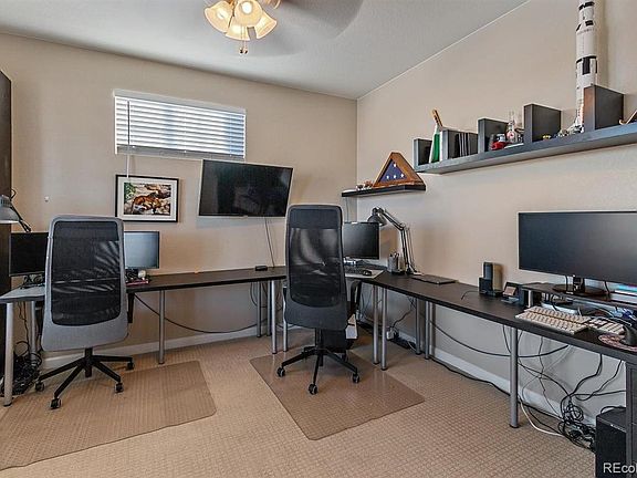 "New Home and Stonegate" Rarely written in the same sentence and rarer still to be able to purchase. Get the style, efficiency and modern-day design of a new home while living in one of the most sought after and established neighborhoods in Parker. Meritage Homes Ridgeline floor plan built in 2018 , this home offers highly efficient & well-balanced heating & cooling with two HVAC systems, Low E windows and high levels of insulation for increased comfort and a quiet living experience. The current owners literally just finished the basement, adding almost 1,000 sq ft of finished space for recreation and enjoyment. Why wait months for a new home to be finished only to have yet more work ahead landscaping and finishing a basement? Not to mention the tens of thousands of dollars you'll pay out of pocket. Conversely why buy an older home that will soon need expensive remodeling or major maintenance? Graced with the latest décor; the warmth, openness and abundance of natural light makes this a very welcoming home. The functionality of the floor plan is stupendous. The tech features numerous. The whole house is wired for Cat 6 Ethernet, the basement has 7.2.4 surround sound pre-wire & 3 new theater chairs, there's a Ring security system with 3 cameras and Ring Doorbell + wireless thermostats & lights. Located at the end of a cul de sac, backing to a greenbelt & directly across the street from the path leading to Stonegate's huge 30-acre open space w/ park, pool tennis courts, clubhouse and more. That same path leads you to the local elementary school and high school. East facing orientation so the sun helps clear your driveway The professionally landscaped front and rear yards await spring's bloom to come to life. Newly planted trees and shrubs, an extended patio with both covered and open sections, two storage sheds on concrete pad, a full sidewalk from front of house to the rear patio and a garden area will enhance your outdoor enjoyment just about the time you move in.