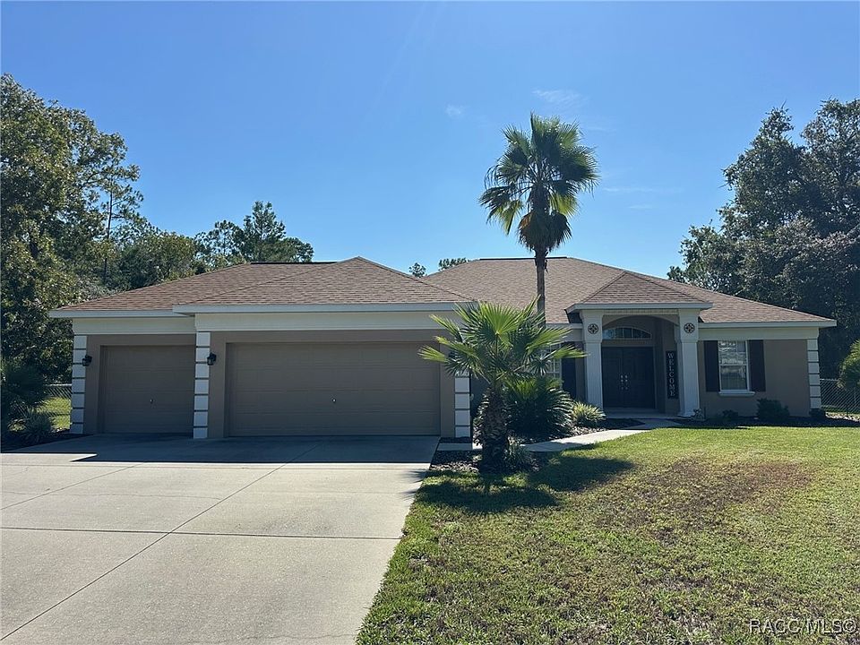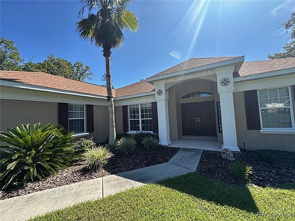 Don't miss this charming home in Citrus Springs, featuring an In-Law Suite and a fantastic caged in-ground swimming pool! The design flows beautifully, with a spacious living room, formal dining area, and an eat-in kitchen equipped with bar seating, granite countertops, stainless steel appliances, and a convenient pantry. The master bedroom opens up to the pool area and includes a walk-in closet, a jetted tub, a private toilet room, and a walk-in shower with a seat. There's also a generous guest bedroom that has sliders leading to the lanai. The In-Law Suite is a great addition, complete with a full kitchen (no refrigerator), a cozy living room, a bedroom, a bathroom, and a private screened porch along with a patio. This home boasts beautiful landscaping with palm trees, creating a lovely outdoor space, and it even has a handy storage shed for extra space. Enjoy the privacy of having no neighboring homes nearby, and take advantage of the spacious 3-car garage for all your storage and parking needs. It’s been well maintained, with notable updates including a new A/C, hot water heater, upgraded insulation, and a new pool pump in 2020. In 2021, the exterior was painted, a new roof was added, the pool enclosure was rescreened, and a new pool heater was installed. Plus, in 2025, it received a new dryer and dishwasher. This place is definitely worth checking out!