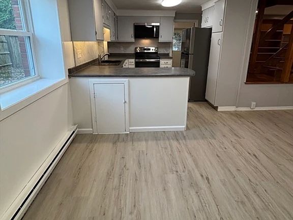 Welcome to 97-99 Roffee St, Barrington! This fully renovated two level, 4-bedroom, 2-bath apartment offers an impressive spacious layout of living space in a desirable neighborhood. Enjoy a modern open layout with brand-new appliances, in-unit washer and dryer, recessed lighting, beautiful wooden bookshelf, updated kitchen and 2 full baths. Featuring off-street parking, large balcony and a nice sized yard. Ideal for those seeking space, comfort and convenience. Close to shops, restaurants and top-rated Barrington Schools. A rare year round rental opportunity.