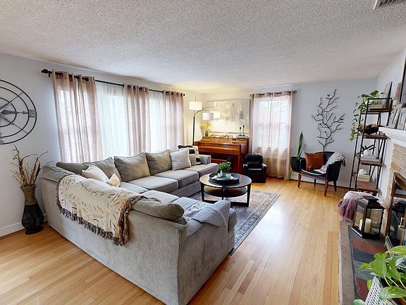 Cozy fireplaceFinished lower levelLarge backyardLarge bow windowHardwood floorsNatural lightUpdated kitchen
