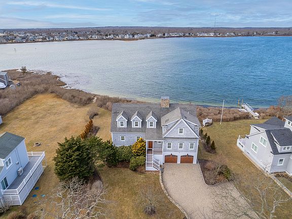 Pristine waterfront custom built Nantucket style home on Great Pond, with breathtaking views from every room and unmatched attention to detail throughout. Bright and open floor plan presents a gourmet kitchen with custom cabinetry and 10 foot island. Perfect for entertaining with a selection of high end appliances. Inviting four season sunroom will be one of the most popular rooms in the house! An open dining area, living room, two bedrooms, full bath, powder room and first floor laundry complete the main floor. The 2nd floor includes a primary suite with fireplace, private deck with water views, oversized closet and office space. The fourth bedroom includes en-suite full bath, with adjacent den, wet bar and private viewing deck. Additional features include a second floor laundry room and outdoor kitchen on main deck. Access to Vineyard Sound rounds out this spectacular home.