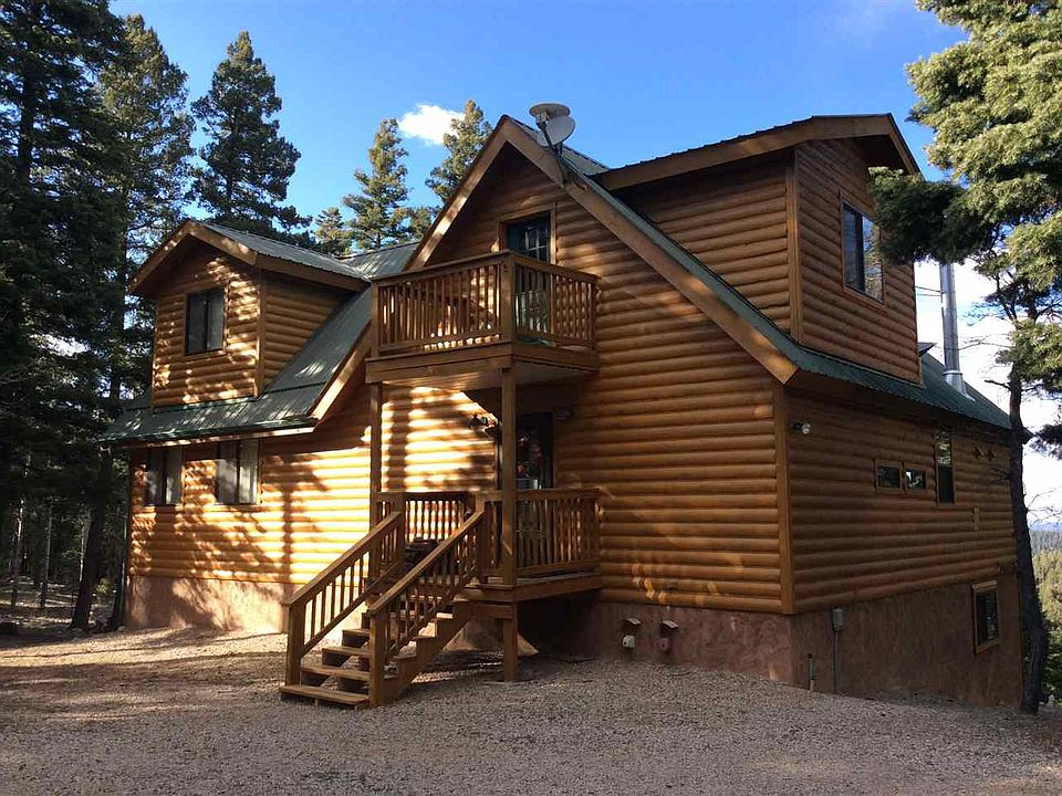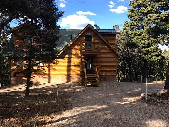 Your Mountain Dream Home, beautiful log cabin on almost 4 acres. This log sided cabin has views to Ruidoso. Features an open floor plan with kitchen, dining, living, master bedroom and bath all on main floor. Another bedroom and loft area for office or game room and bedroom and bath and another living area on the bottom floor. The main living area includes a wood burning fireplace. Lots of wildlife on this property. e