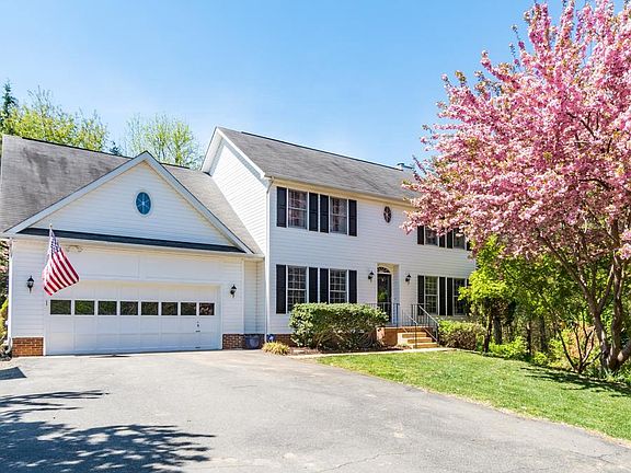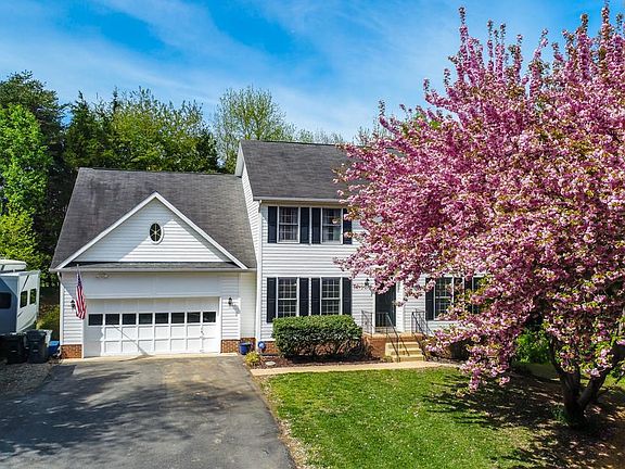 Exceptional house on a private 2+ acre lot in Stafford County Virginia! 3 finished levels, 9 foot ceilings and upgraded throughout! Fully renovated kitchen! Hardwoods on the main level in foyer, formal living and formal dining and a large open family room off of the kitchen that offers a gas fireplace with mantle and wired for surround sound. Kitchen has tile. The sunroom is just off the breakfast area and is spacious in size and walks out to your deck. A great backyard with a playground and sandbox already installed and ready to convey! Upstairs you have a luxurious master suite. The bathroom has been redone and is absolutely beautiful, new custom floors, great soaking tub, a large separate shower, double vanities. The master bedroom offers a sitting room and 3 separate closets, 2 are large walk ins! 3 additional bedrooms and a full bath in the hall upstairs. In the basement you have a massive recreation room, a 5th bedroom, a full bath, and great storage space! Outside you a have a beautiful pond, with a lovely walkway, bridge, fenced in and stocked with bass fish! Wooded, secluded lot and an RV pad already in place. Retaining wall, driveway was widened and has sewer cutout for RV dumping. Outside lights, LED with night sensors, radon mitigation system, updated safety outlets. No HOA. Minutes to VRE, close to I-95, YMCA, parks, shopping, entertainment and restaurants!