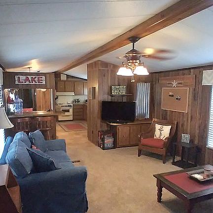 This mobile home is located in beautiful Little Mineral Resort and marina and comes fully furnished and ready for a family to move in and enjoy all Lake Texoma and Little Mineral has to offer! Home has many updates and is very clean and well maintained. Includes 2008 EZ go golf cart with new batteries installed in April 2021. 2015 New Deck and Patio Cover 2015 Paint Interior Walls & Ceilings 2016 Digital T-Stat 2016 New Carpet Throughout 2016 New Central Heat & AC 2016 New Laminate Floors Throughout 2016 Remodel Master Bath 2017 New Metal Roof 2017 Paint Exterior Siding & Trim 2018 Added Railing & Yard Enclosure to Deck 2019 New Ceiling Speakers 2019 New Exterior Rock Parking & Yard 2022 New Hot Water Heater Includes: All furniture (except kitchen table & chairs), linens, kitchen appliances, dishwasher, cookware, washer/dryer, TV, stereo receiver, décor, hammock, golf cart, patio furniture, Rubbermaid storage boxes (2 ea.), grill, misc. tools inside & out