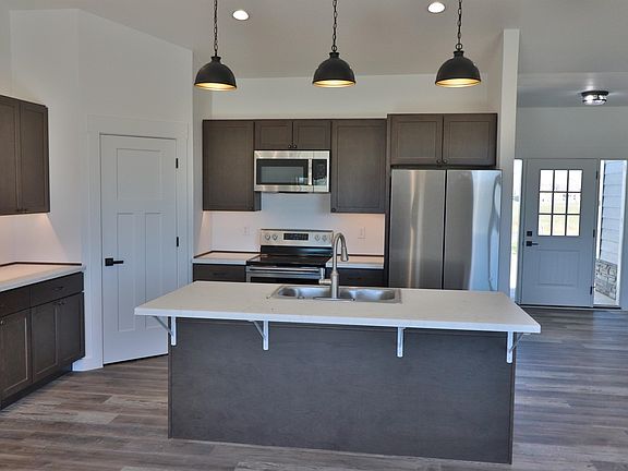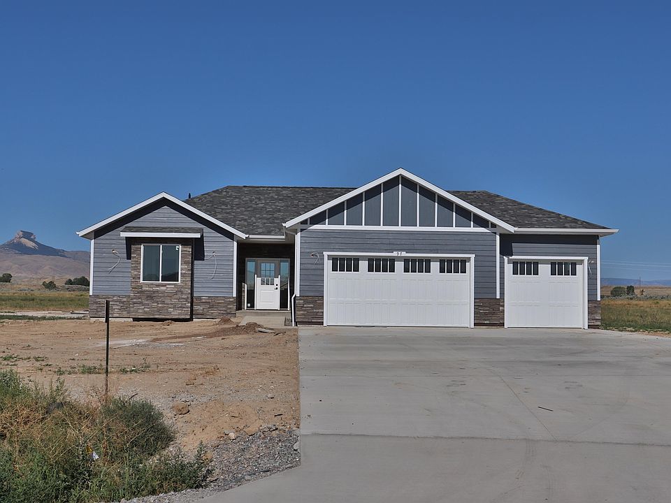 New custom built country home on 4.31 net acres. Owner financing available. Located between Powell & Cody, with convenient access to both communities. The home features 1,675 sq. ft. of finished living space and 752 sq. ft. 3 car garage space (plumbed/vented for gas heater). The spacious great room offers 9 ft. ceilings, LVP flooring, an electric fireplace with concrete wall accents and built in shelving. The kitchen is built with island bar seating with a sink and dishwasher, laminate marble counter tops, custom cabinets, pantry and new appliances. The master bedroom is sure to impress you with 9 ft. ceilings that are tray lighted with crown molding, LVP flooring and a walk-in closet. The master bathroom shower is hand textured concrete with a pebble stone base, double vanities and a separate bathing tub. In addition, there are 2 guest bedrooms with LVP flooring, 1 full guest bathroom and laundry room. Mechanicals include forced air (natural gas), A/C and hot water on demand. Exterior home features include a Malarky 30 year architectural shingle roof, LP smart siding with rock accents, covered back patio with amazing views of Heart Mountain (plumbing nearby for gas grill access) and an extended concrete driveway. The property has 4.18 acres of irrigation water rights currently planted in alfalfa. Horses are welcome and covenants are limited. Just a 15 minute drive to Cody, WY and another 50 minute drive to Yellowstone National Park!