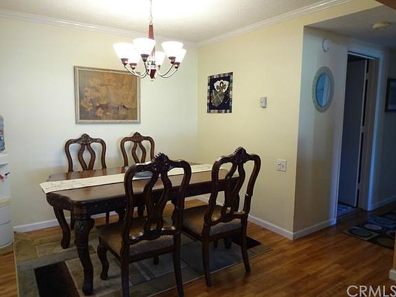 Inviting Majorca in Laguna Woods Village, a 55+ Community. Located close to the Serpentine walk, carport, laundry, and bus stop for your convenience. This well cared for manor features wood flooring in the living areas, hall, and 2nd bedroom. The master bedroom is carpeted. Both bathrooms and kitchen have tile flooring. There are granite countertops in the kitchen as well as recessed lighting and a built-in microwave and smooth glass cooktop. Stainless steel oven and white refrigerator and dishwasher complete the kitchen. There is crown molding in the living room and the master bedroom. The building is due to be painted in July and the breezeway will be resurfaced afterwards.