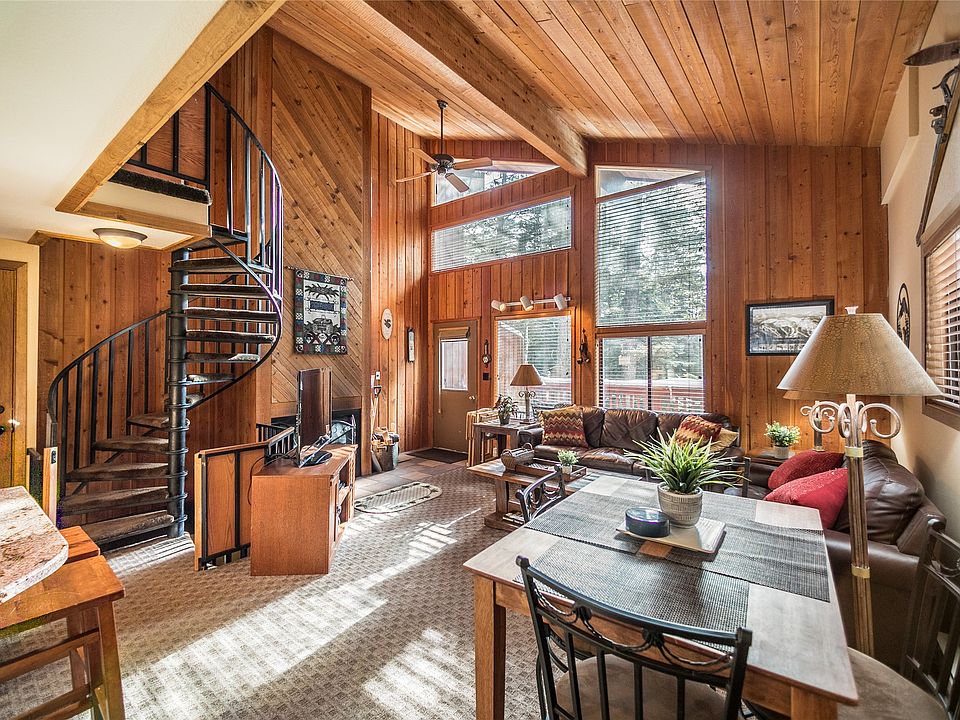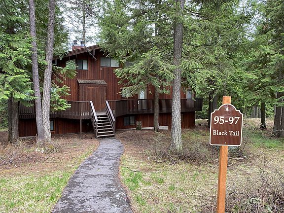 Fully furnished and turn-key, this beautifully remodeled 3-bedroom, 2-bath end-unit condo in Ptarmigan Village offers comfort, character, and income potential in a private wooded setting. Located in one of the larger, sought-after 3-plex buildings at the end of a quiet cul-de-sac, this unit enjoys serene forest views and a seasonal creek from the private deck. The main level features vaulted ceilings and a cozy wood-burning fireplace, creating a warm, mountain-style ambiance. The updated kitchen and baths blend function with style, and the unit includes in-unit laundry and a separate storage area for skis or snowboards. Resort-style amenities include indoor and outdoor pools, outdoor hot tub, tennis courts, walking and hiking trails, a playground, and private Whitefish Lake beach access. Zoned for nightly/weekly rentals, this is an ideal opportunity for a vacation getaway or investment. Located just minutes from Whitefish Mountain Resort and close to the City of Whitefish for shopping, dining, and year-round recreation.
