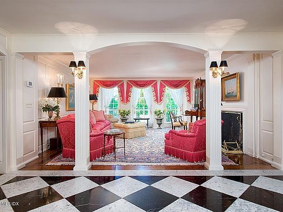GLORIOUS & MEMORABLE MID COUNTRY GEORGIAN MANOR ESTATE. FABULOUS TOTAL RENOVATION DESIGNED BY AUSTIN PATTERSON, BUILT BY HOBBS. HIGH DISTANT VIEWS OF LI SOUND FROM UPPER FLOORS, CHARMING POOL HOUSE WITH BRICK FLOOR (FP)AND BATH. GARAGE APT (LR,K,2 BR,B). AMDEGA SOLARIUM; EXERCISE RM, SPECTACULAR POOL W/WATERFALLS, MANY TERRACES, UNIQUE WROUGHT IRON BALUSTRADES DESIGNED BY AN ARTIST. FULL CROQUET LAWN, BOXWOOD & ENGLISH GARDENS & ORCHARDS, A HIDDEN TENNIS COURT W/CHARMING GLASS ROOFED PAVILION. LEVEL OPEN LAWNS & GROUNDS, ADJOINS 2 ACRE CONSERVATION PROPERTY.GATES OPEN TO SWEEPING DRIVEWAY TO STONE COURTYARD W/FOUNTAIN, IMPECCABLE MOVE IN CONDITION.SUPERB DECORATING & INCREDIBLE FLOORS. IDEAL LOCATION IN THE QUIET EPICENTER OF MID COUNTRY.