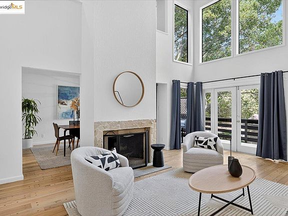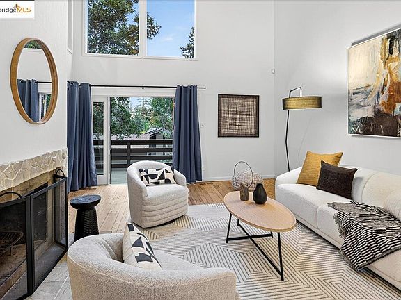 $50,000 REDUCTION!!! Nestled in a tranquil wooded setting in Upper Rockridge, this coveted end unit townhome blends comfort with timeless design. A semi-open floorplan with dramatic vaulted ceilings fills the living spaces with light, creating an airy atmosphere. With 3 bedrooms and 2.5 baths, the home offers flexibility for remote work, guests, or creative pursuits. Hardwood floors warm the main level, while a spacious deck invites morning coffee, relaxed evenings, or al fresco dining under the stars. An attached two-car garage provides secure parking and storage. Part of a close-knit community, residents enjoy a pool, clubhouse, and gathering spaces for potlucks and holiday celebrations. Just minutes from the Village Market, Terrace Café, and Broadway Terrace Nursery—with easy access to Highway 13 and Rockridge BART—this location balances hillside serenity with urban convenience. Nearby Rockridge, Montclair Village, and Lake Temescal trails add shopping, dining, and recreation. A rare opportunity to own a beautifully maintained home in one of Oakland’s most desirable enclaves—where easy living meets natural beauty.