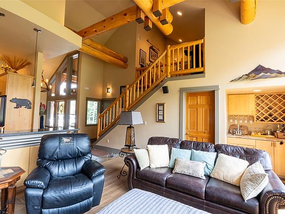 Located in the heart of the Big Sky Meadow Village, this beautiful 2BR/2.5BA Crail Creek Condominium is being offered partially furnished. The lower level has been set up as a 3rd bedroom but does not have window egress. This is an end unit with master bedroom on the main level, an open kitchen/living room floor plan, a wet bar, a rock wood burning fireplace, a 300 +/- finished bonus room in the lower level, a wrap-around deck with hot tub, and a two-car heated garage. Convenient location within walking distance to restaurants, grocery stores, shopping, the post office, and golf course clubhouse. Very well maintained and not rented.