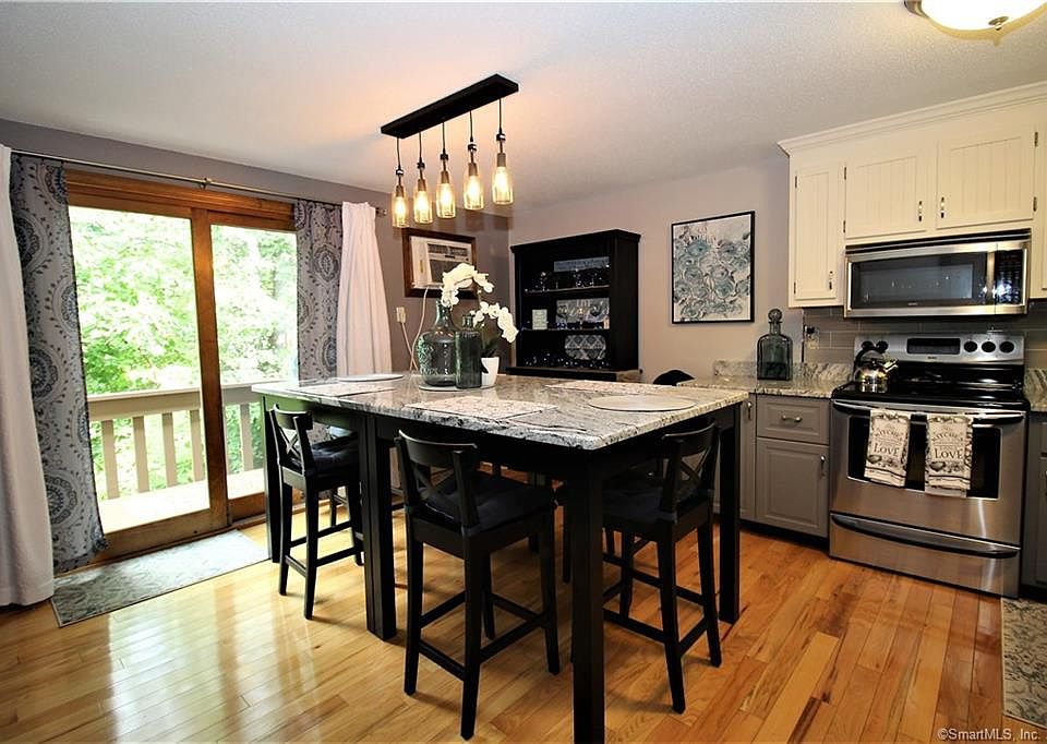 Gorgeous, pristine condo with stunning hardwood floors, fantastic kitchen & bath updates and tasteful touches & hues throughout in an excellent residential location! This gorgeous kitchen features on trend cabinetry, granite counters, tile backsplash and stainless steel appliances - this kitchen looks like it's right out of HGTV! Sliders lead to a great deck with private wooded views! Great for entertaining or enjoying all for yourself. Both bathrooms are modern and updated with tile flooring. Main floor bath includes modern and trendy barn door that slides along a beautifully shiplapped wall. This home has been meticulously maintained and is energy efficient; low condo fees with an oversized garage included! Brand new dryer included, newer hot water heater, sliding doors and new garage door & opener. Walking distance to local parks and convenient to I-84. FHA Approved. Don't wait! It won't last!!