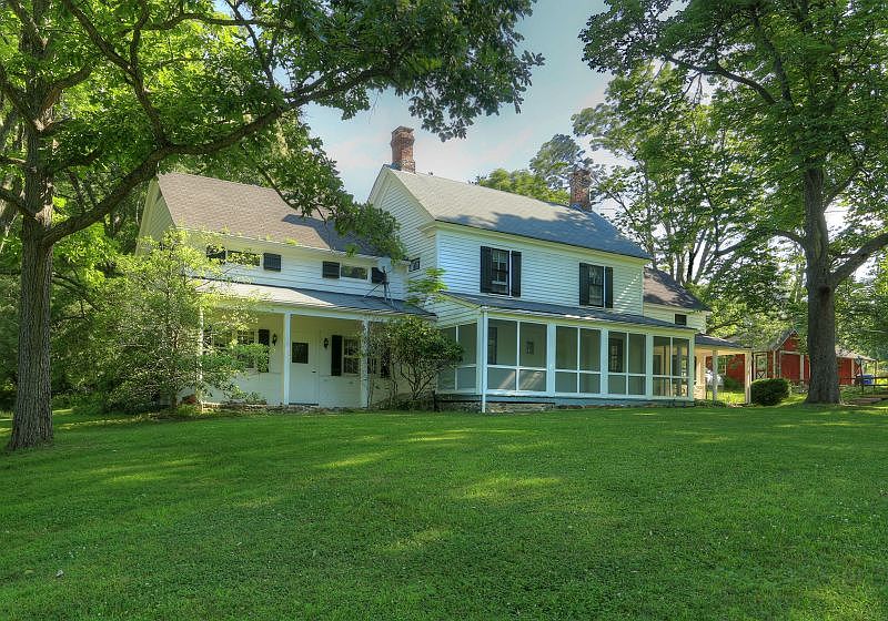 Picture perfect country property w/antique farmhouse, pond, rolling lawns, mature trees, fields, barns & peaceful setting--all on 25 farm-assessed acres. Magical storybook property.